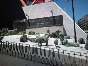 南極観測で働いた樺太犬の記念像らしいですが、なるほどどの顔も凛々しい表情ですな!!
